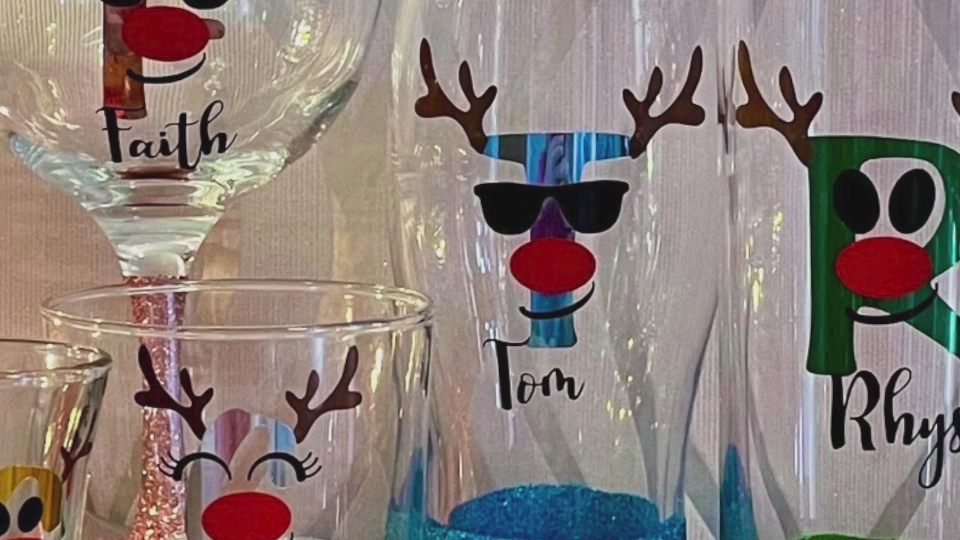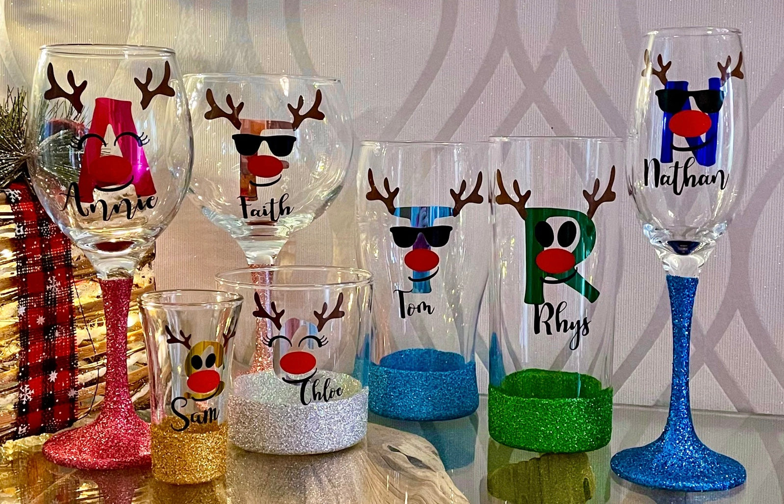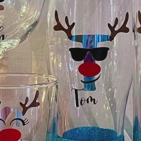 Christmas gift for her, Christmas gift for him, Stocking filler, Secret Santa ideas, Secret Santa gift. Christmas dinner glasses. reindeer glasses.