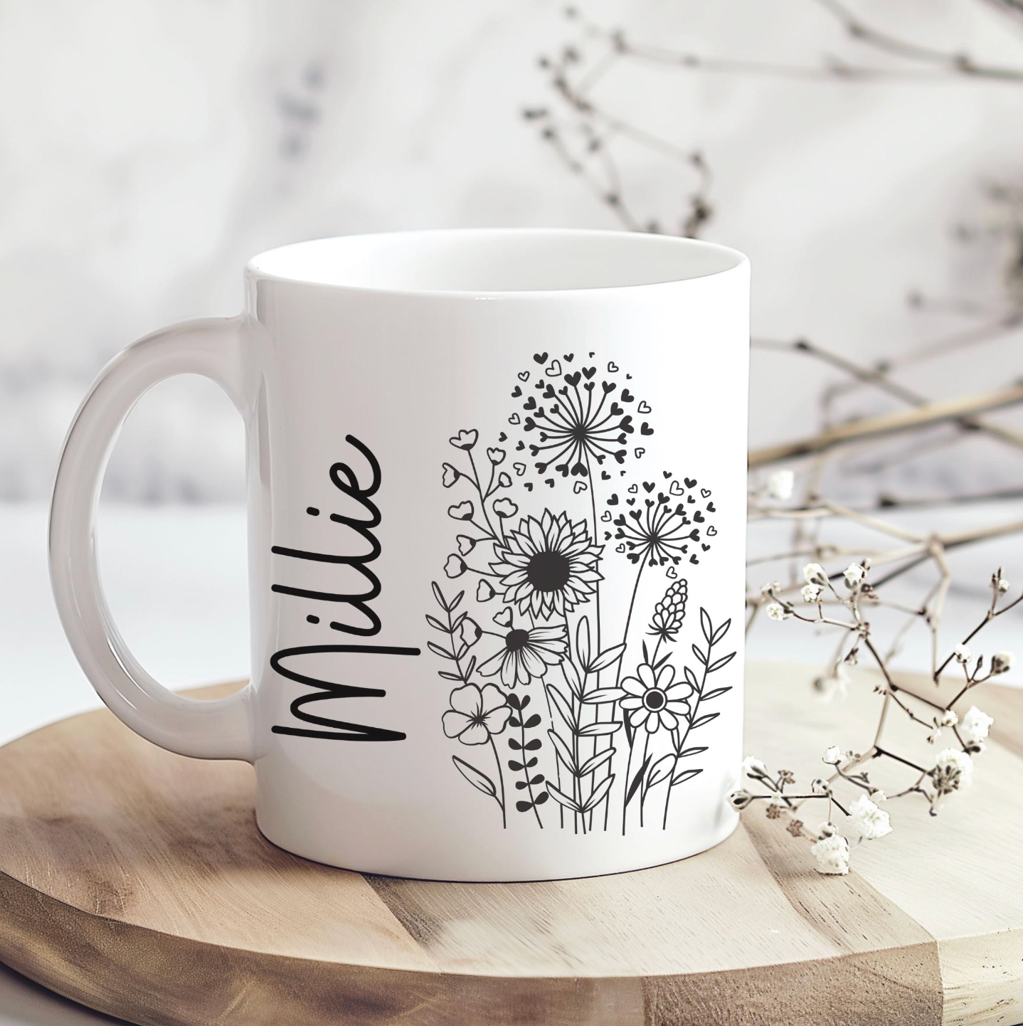 This mug blends minimalist floral design with a personal touch, making it a timeless and heartfelt gift. Whether you're gifting a loved one or upgrading your mug game, the subtle artistry and effective design make it a standout piece.