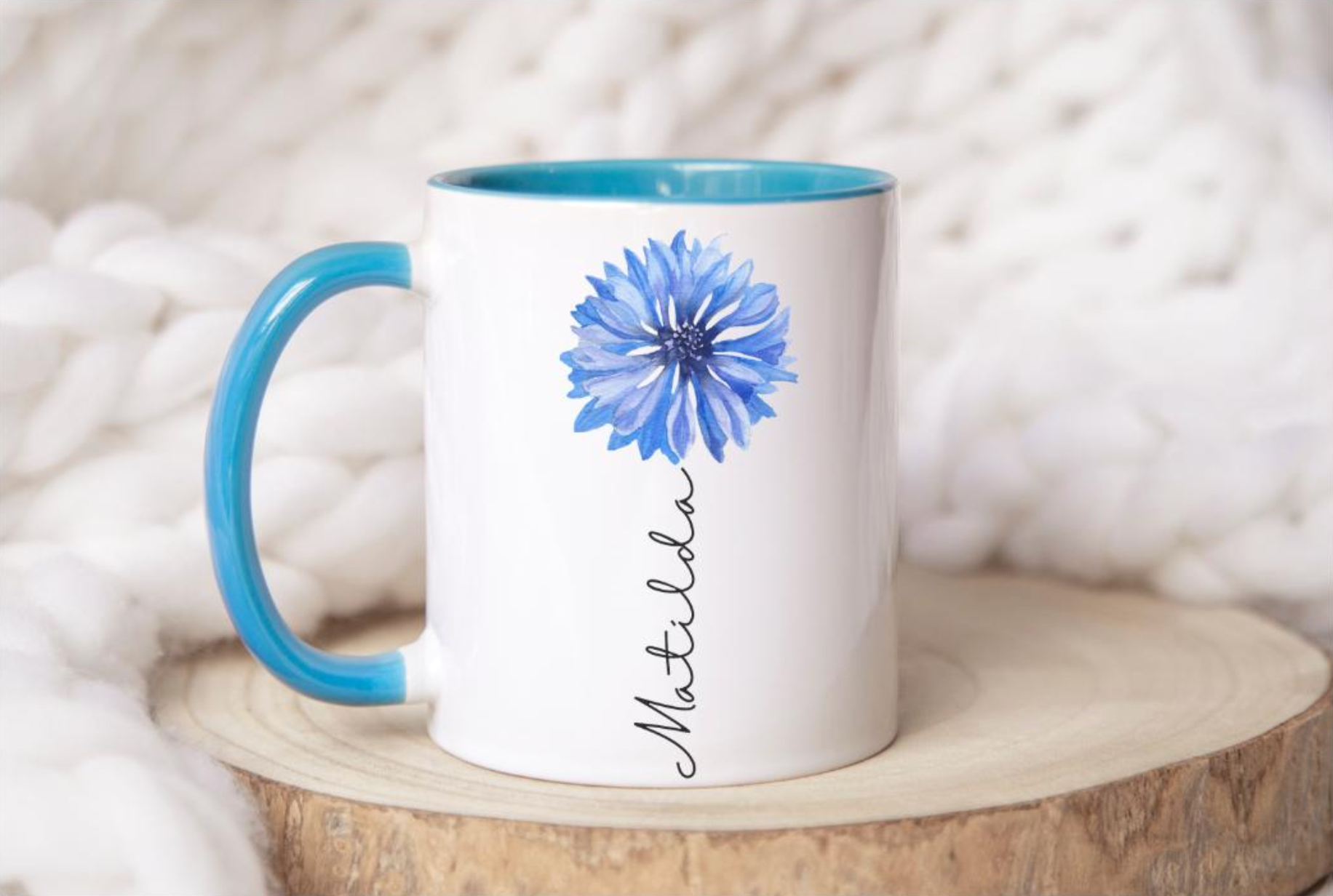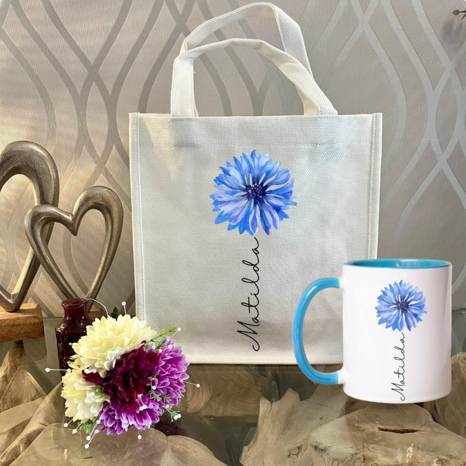 Personalised Blue Flower Mug & Optional matching Gift Bag β Brighten Someone's Day!Β